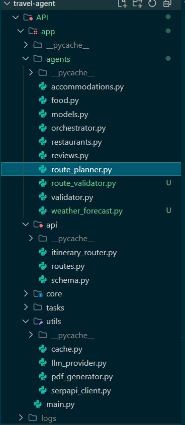 Python-based AI agent modules with specialized components for intelligent trip planning