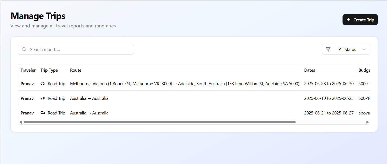 Intuitive dashboard for viewing and managing travel itineraries and bookings